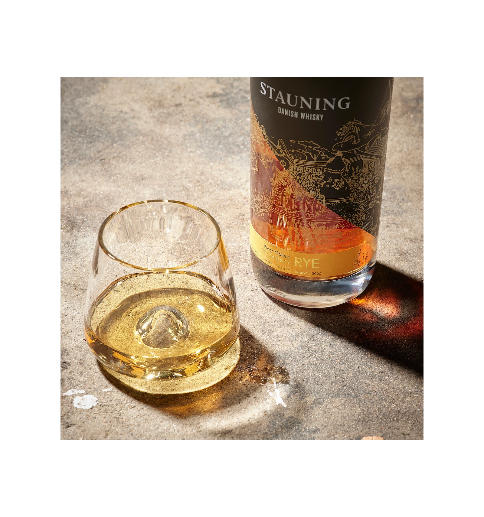 Stauning Bastard en rye whisky, der er brygget på rene vestjyske råvarer, maltet på gulvet og dobbelt-destilleret over åben ild.